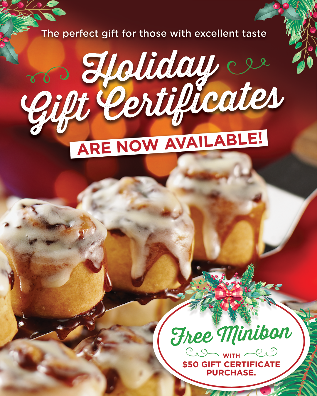 Cinnabon: Holiday Gift Certificates Are Now Available!