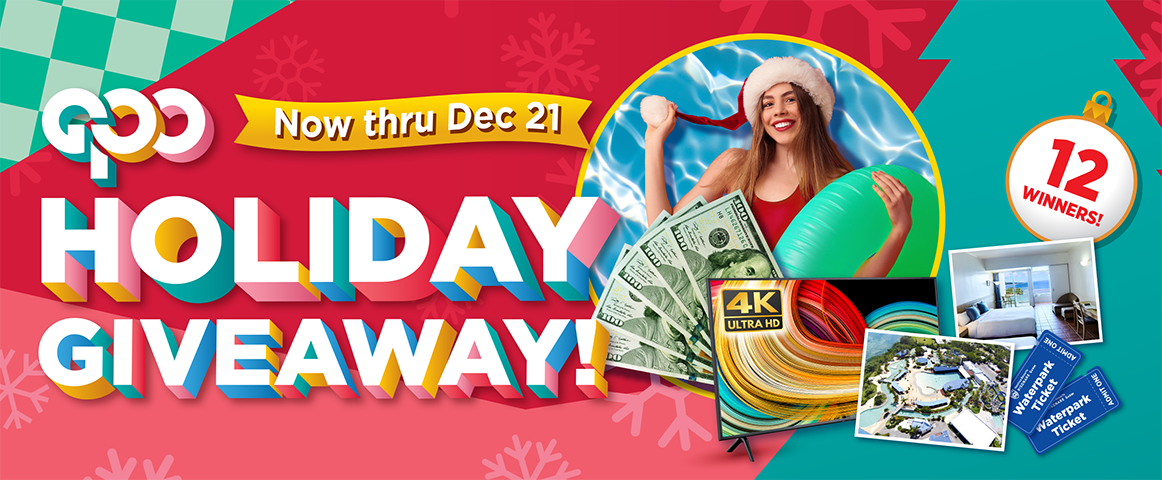 WHO MAY ENTER: The giveaway is open to Guam residents ages 18 and older. Employees of GPO and its respective agencies and their immediate families are not eligible to win. (Immediate family shall be defined as spouse and children living in the same household. Additionally, all others including mother, father, siblings, and in-laws living under the same roof as the GPO store employees and managers, and its advertising agencies shall be deemed ineligible.) Any submissions made under false pretenses will automatically be disqualified.