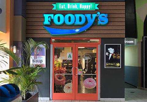 Foody’s is a fast-growing local franchise offering local baked goods, fresh coffee, gourmet Eisenberg hotdogs & F’real Shakes. Step into the popular Beer Cave where you’ll find a variety of exclusive beers.